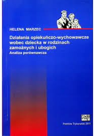 Helena Marzec w swojej pracy "Działania opiekuńczo-wychowawcze wobec dziecka w rodzinach zamożnych i ubogich" bada różnice i podobieństwa w metodach opieki i wychowania dzieci w zależności od statusu ekonomicznego rodziny, analizując, jak zasoby materialne wpływają na rozwój dziecka, potrzeby opiekuńcze oraz wyzwania stojące przed rodzicami w różnych warunkach finansowych, co stanowi cenną pozycję w pedagogice i socjologii rodzinnej.